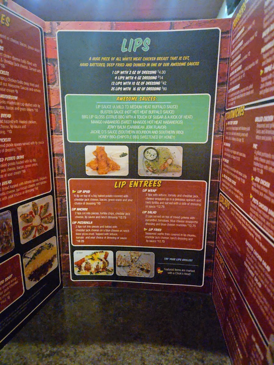 Seasoned waffle fries covered in lip chunks, cheddar jack cheese, ranch dressing and lip sauce