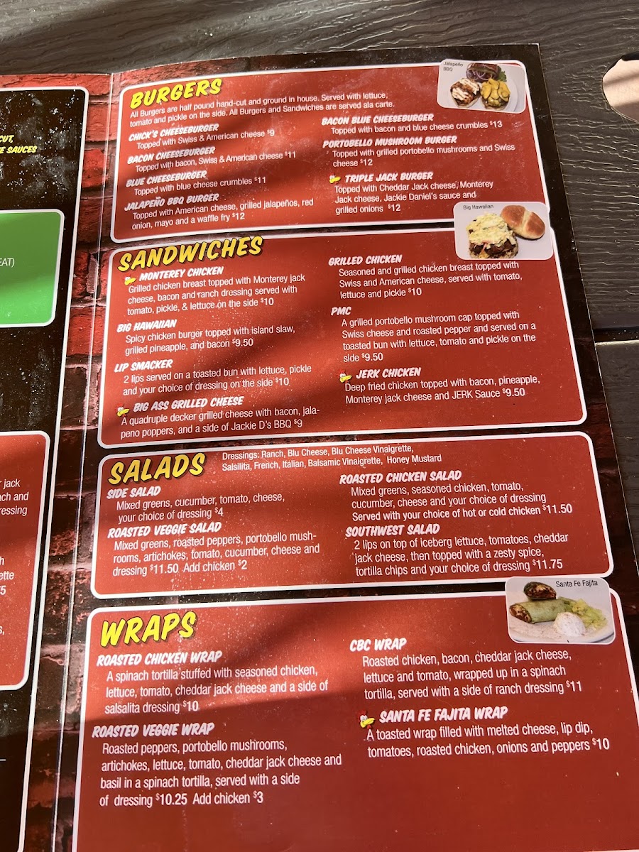 Grilled chicken breast topped with Monterey jack cheese, bacon and ranch dressing served with tomato, pickle, & lettuce on the side